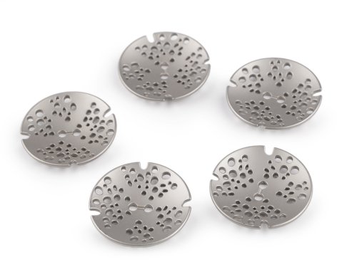 Kovové gombíky s dierovaným dizajnom vyniknú na kabátoch, sakách, bundách alebo kardiganoch. Sú kvalitné, ľahko vypuklé a na odevoch upútajú pozornosť. Veľkosť gombíkov nájdete v tejto tabuľke.