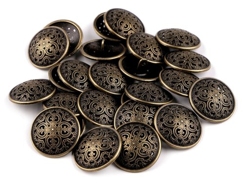 Kovové gombíky s filigránovým vzorom sú vyrobené zo zliatiny zinku a nemagnetických kovov. Majú spodné prišívanie. Gombíky elegantne vyniknú na kabátoch, sakách, košeliach a pod. Zaujímavo ozdobia aj kabelky, tašky alebo klobúky. [Gombíky sú balené vo vrecku .]Veľkosť gombíkov nájdete v tejto tabuľke. [Zinok chráni kov proti korózii. Pozinkované výrobky po vypraní zostávajú bezo zmien.]
