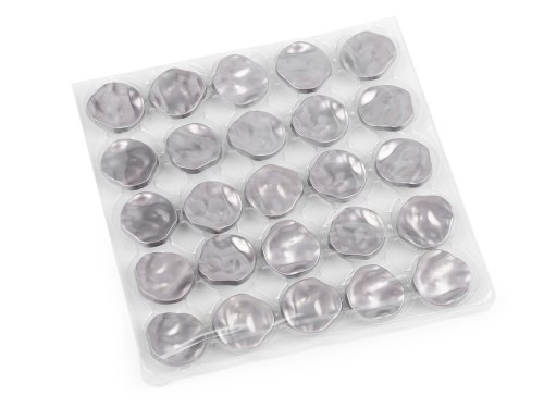 Kovové gombíky vás na prvý pohľad zaujmú svojim nevšedným "pokrčeným" vzhľadom. Sú vhodné na našitie na saká, kabáty, svetre alebo tiež na doplnky, ako sú kabelky, tašky či batohy. Veľkosť gombíkov nájdete v tejto tabuľke.