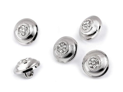 Kovové gombíky vyniknú na sakách, košeliach, šatách a pod. Pýši sa stredom v tvare kvetu z brúsených kamienkov. Majú spodné prišívanie. Veľkosť gombíkov nájdete v tejto tabuľke.