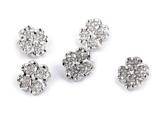 Kovové gombíky štvorlístky sa úchvatne trblietajú vďaka brúseným kamienkom, ktorými sú vysadené. Vyniknú na sakách, košeliach, šatách a pod. Majú spodné prišívanie. Veľkosť gombíkov nájdete v tejto tabuľke.