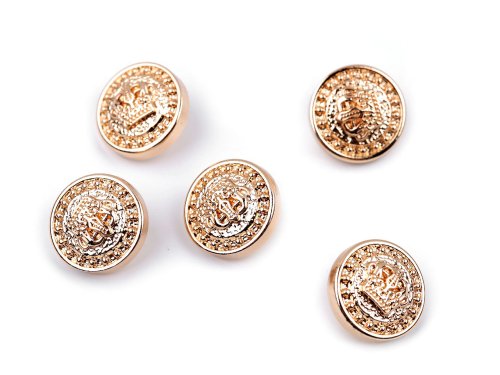 Gombíky ozdobené motívom kráľovskej koruny sú vyrobené zo zliatiny zinku a nemagnetických kovov. Elegantne vyniknú na sakách, kabátoch, svetroch a pod. Môžete ich našiť aj na doplnky, napríklad kabelky, tašky alebo klobúky. Gombíky sú balené vo vrecku. Veľkosť gombíkov nájdete v tejto tabuľke. Zinok chráni kov proti korózii. Pozinkované výrobky po vypraní zostávajú bez zmien.