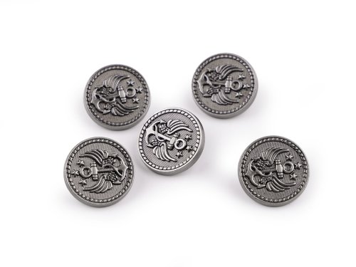 Kovové gombíky vynikajú kvalitným spracovaním s prepracovanými detailmi. Majú jemný matný lesk. Zaujímavo budú vyzerať na sakách, kabátoch, svetroch, šatách, nohaviciach aj kraťasoch. Môžete ich našiť aj na doplnky, napríklad kabelky, tašky alebo čiapky kapitánskeho štýlu a pod. Veľkosť gombíkov nájdete v tejto tabuľke.