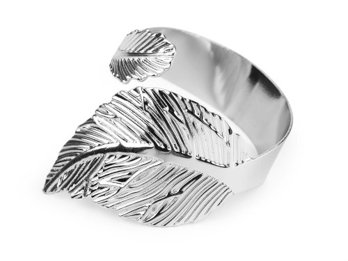 Kovový krúžok na obrúsok s dekórom listov bude elegantnou ozdobou sviatočného stola. Skvele podčiarkne slávnostnú atmosféru. Má prerušenie, čo umožňuje ľahšie vloženie obrúska.
