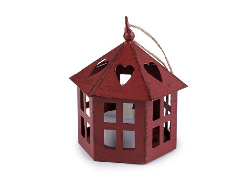 Kovový lampáš svietiaci na zavesenie - červená tmavá