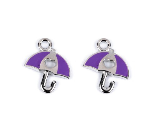Kovový prívesok / ťaháčik na zips dúha, mráčik, dáždnik, srdce, vajcia, víla - fialová dáždnik (2 ks)