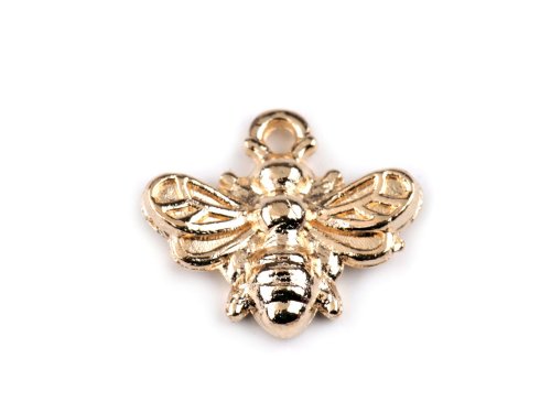 Kovový prívesok / ťaháčik na zips mini včielka 13x11 mm - zlatá sv. (10 ks)