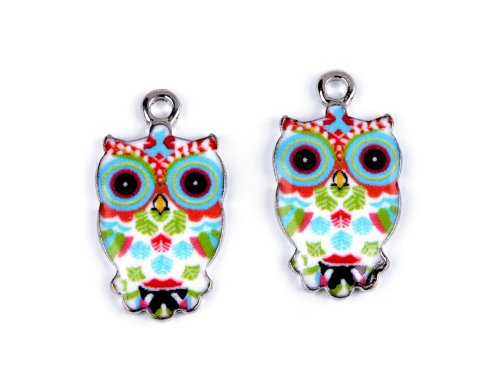 Prívesok kovovej sovy s farebným smaltom je veľmi precízne spracovaný. Má mnohostranné využitie, je jednostranný, z nemagnetického kovu.