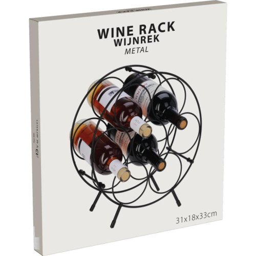 Elegantný kovový regál na víno s okrúhlym tvarom a kapacitou pre 7 fliaš. Perfektný na uskladnenie a vystavenie vášho obľúbeného vína.