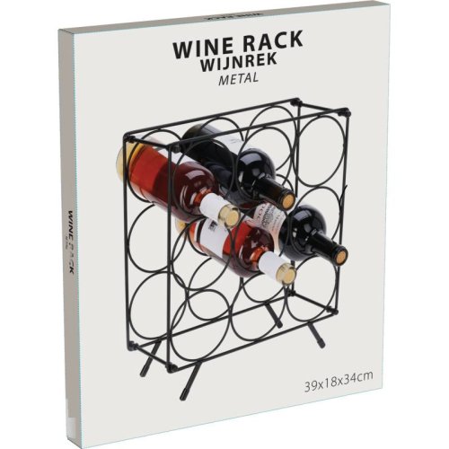 Štýlový kovový regál na víno s obdĺžnikovým tvarom a kapacitou pre 9 fliaš. Ideálne na uskladnenie vína v každom priestore.
