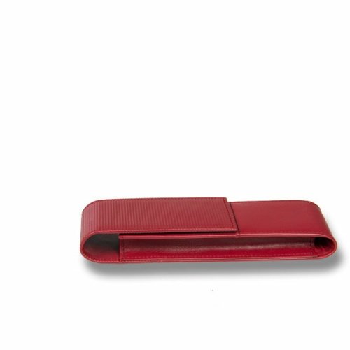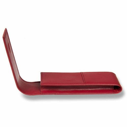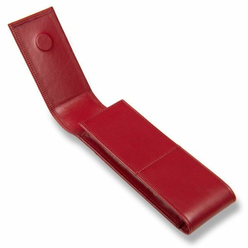Puzdro z mäkkej červenej nappa kože s vyrazenými prúžkami na zatváracej klope, pre 2 perá.