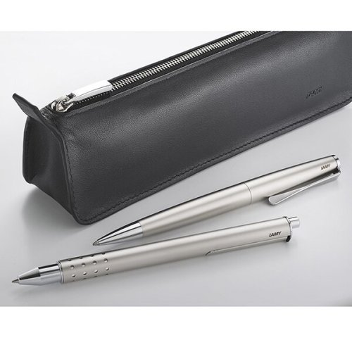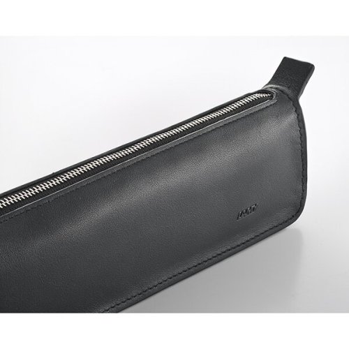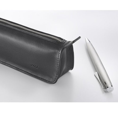 Čierne trojuholníkové kožené púzdro Lamy s vnútornou textilnou podšívkou. Puzdro je opatrené lešteným chrómovaným zipsom.