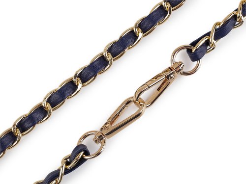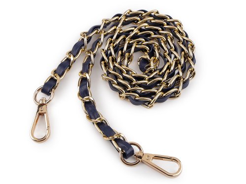 Kovová retiazka je efektne prepletená remienkom z eko kože. Využijete ho na menšie kabelky, listové kabelky alebo puzdrá na mobilné telefóny. Na oboch jeho koncoch nájdete pripevnené karabinky. Retiazka nie je určená na veľkú záťaž.