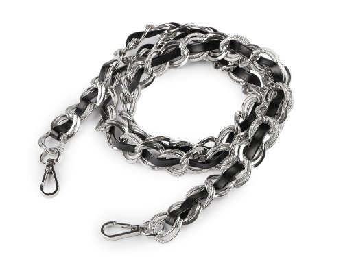 Koženkový popruh / ucho s retiazkou a karabínami šírka 2 cm - čierna strieborná