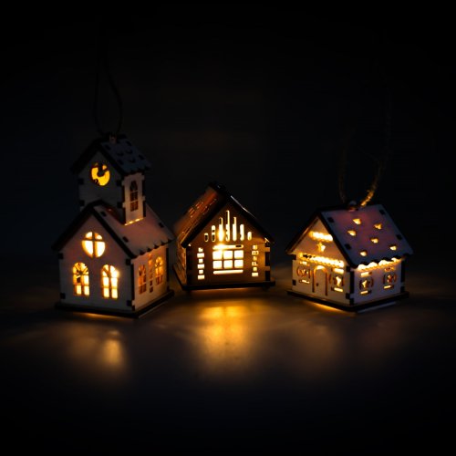 3D miniatúra veľkého domčeka. Kostol predstavujúci symbol viery a nádeje, pokoja a lásky k Bohu. Aj vám môže tento kostolík spríjemniť chladné večery svojim jemne blikajúcim svetlom LED sviečky. Táto drevená dekorácia slúži len na postavenie na poličku alebo stôl bez možnosti zavesenia z dôvodu mohutnosti a váhy konštrukcie domčeka. Dodáva sa už postavený, tak ako ho vidíte na obrázku. Súčasťou je aj LED sviečka, v ktorej je vymeniteľná 3V batéria. Hlavné vlastnosti: dekorácia bez možnosti zaveseniarealistická 3D miniaturas LED sviečkou vo vnútrivyrobené z 3 mm topoľového dreva