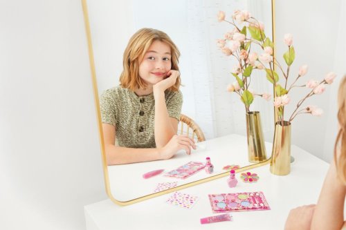 Pripravte svoje nechty na ružový lak pomocou kvetinového pilníka a doplňte ho nálepkami na nechty. Doplňte svoj kvetinový vzhľad pomocou lesku na pery, paletky očných tieňov a kozmetického štetca. Vek od 8+.