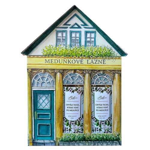Kozmetická sada Medovkové kúpele obsahuje sprchový gél 100 ml a sprchový gél 2v1 100 ml s extraktom medovky. Darčekový obal má tvar domčeka s originálnou grafikou ručne kreslenou naším kolegom - ide o autentické dielo, ktoré dodáva celej sade osobitý charakter.