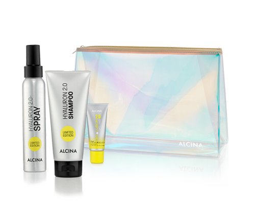 Šampón s kyselinou hyalurónovou Hyaluron 2.0 100 ml Sprej na vlasy s kyselinou hyalurónovou Hyaluron 2.0 100 ml Kondicionér na vlasy s kyselinou hyalurónovou Hyaluron 2.0 20 ml Kozmetická taštička