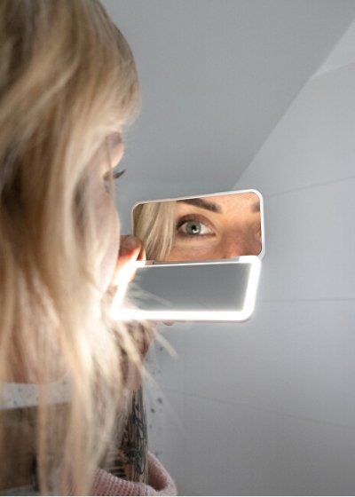 Kozmetické zrkadlo s LED osvetlením poskytuje jasné a rovnomerné svetlo, vďaka ktorému uvidíte každý detail aj pri slabom okolitom osvetlení. Okrem štandardného zrkadla poskytuje aj zväčšovacie zrkadlo s dvojnásobným zoomom. To vám umožní lepšie vidieť aj tie najmenšie detaily.