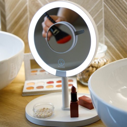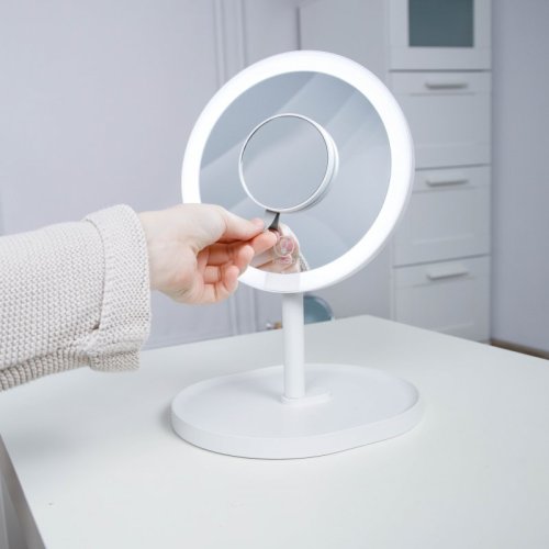 Kozmetické zrkadlo s LED podsvietením a malým zväčšovacím zrkadlom.