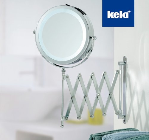 Samotný kruhový zrkadlový povrch má priemer 14 cm. Predná strana má 1násobné zväčšenie a zadná strana je 3-krát väčšia. Zrkadlo je rozšíriteľné na dĺžku 20 - 65 cm. Samotný zrkadlový povrch je navyše otočný. Okrem toho môžete použiť prepínač na osvetlenie povrchu zrkadla bielym svetlom LED! Dodávka obsahuje príslušenstvo (bez batérií) pre jednoduchú a rýchlu montáž na stenu. Pre LED svetlo vyžaduje 4x AAA 1,5V batérie.-farba : strieborná lesklá-materiál: chróm-výška: 36 cm-priemer: 17,5 cm