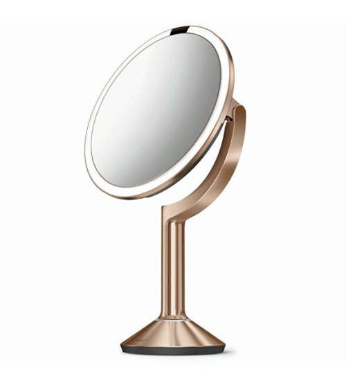 Zrkadlo Simplehuman vám dovolí dokonalé nalíčenie v akúkoľvek dennú dobu. LED osvetlenie simuluje prirodzené slnečné svetlo a tak perfektný odtieň dosiahnete pred svitaním aj po zotmení. Budete mať k dispozícii celkom 3 zrkadlá s priblížením 1x, 5x a 10x. Maximálny svetelný jas 800 luxov je možné plynule regulovať už od 100 luxov. LED svetlo sa aktivuje automaticky senzorom pohybu. Na jedno nabitie zrkadlo vydrží až 5 týždňov prevádzky. Vyrobené z nerezovej ocele.