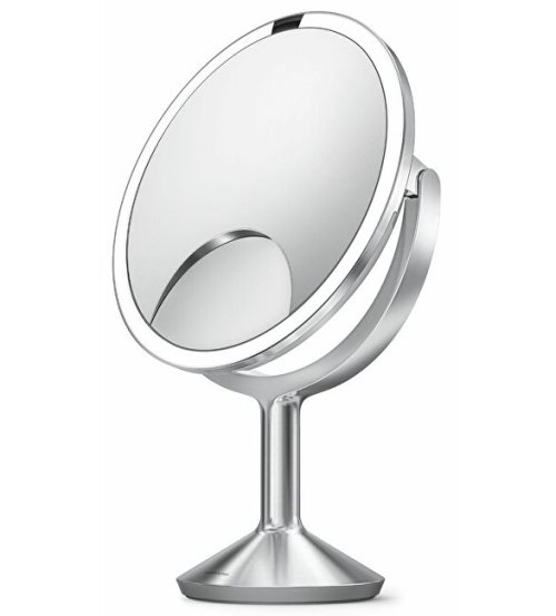 S modelom Trio Max budete mať tri zrkadlá v jednom. Jedna strana dáva 5x násobné zväčšenie, takže uvidíte detailne celú svoju tvár. Stačí len dvakrát poklepať na pravú spodnú časť zrkadla a to sa automaticky preklopí na druhú stranu, kde sa uvidíte v nezväčšenom odraze 1:1 alebo v spodnom okienku s 10x násobným zväčšením, pre tie najjemnejšie detaily – perfektné na aplikáciu očných liniek alebo úpravu obočia. Svetelný systém TRU-LUX napodobňuje prirodzené denné svetlo, čo vám umožní vidieť svoju tvár vo všetkých odtieňoch. Ihneď teda uvidíte akékoľvek rozdiely a nepresnosti vo farbe. Nastavenie svetla je možné prepnúť aj do režimu „osvetlenie pri sviečkach“, takže svoj make-up môžete skontrolovať, než vyrazíte do reštaurácie na večeru. Intenzitu jasu rýchlo a jednoducho nastavíte plynulým dotykom po obvode zrkadla. A zrkadlo sa vďaka senzoru pohybu vždy rozsvieti v momente, keď k nemu priblížite svoju tvár.