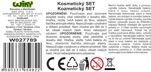 Kozmetický set. Rozmery fénu 14x15x5 cm. 1xAA batéria do fénu. 2 varianty - zrkadlo, natáčky.