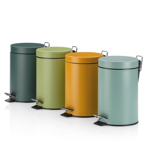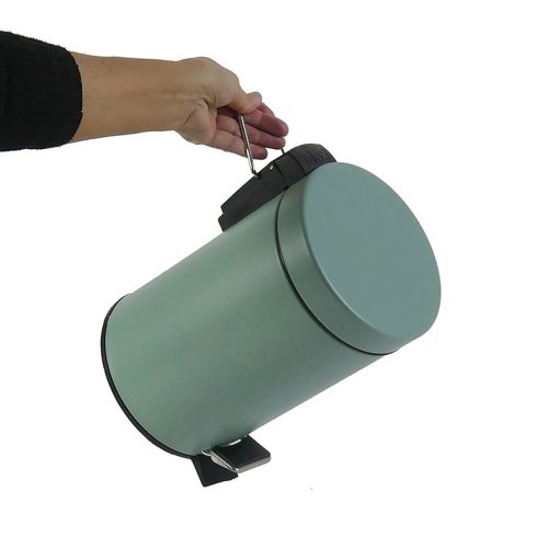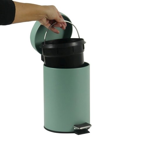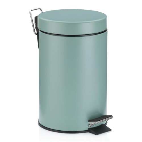 Na menší odpad v kuchyni alebo kúpeľni: šliapací kôš z matného kovu vo farbe jade green. Guma na spodnej strane zaisťuje pevný stojan. Vnútorné vedro je vyrobené z čierneho plastu a má praktické ucho na prenášanie. Odpadkový kôš je vysoký 26 cm a má priemer 17 cm. objem 3l. Kov s práškovým nástrekom matný 3L, 17cm, 26cm v