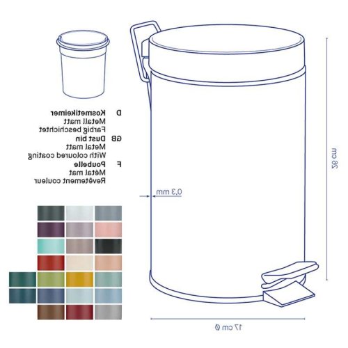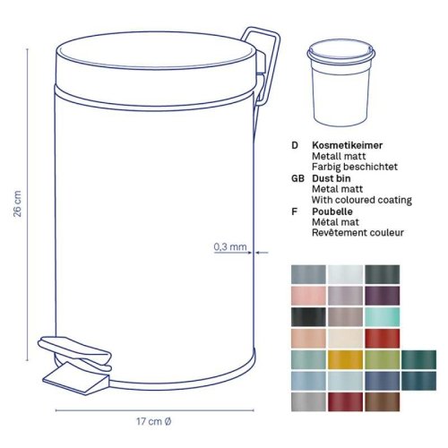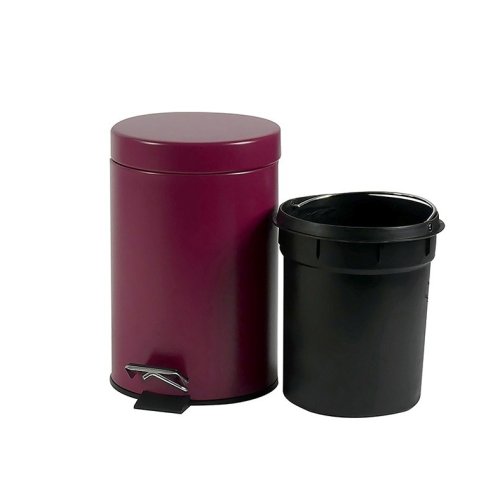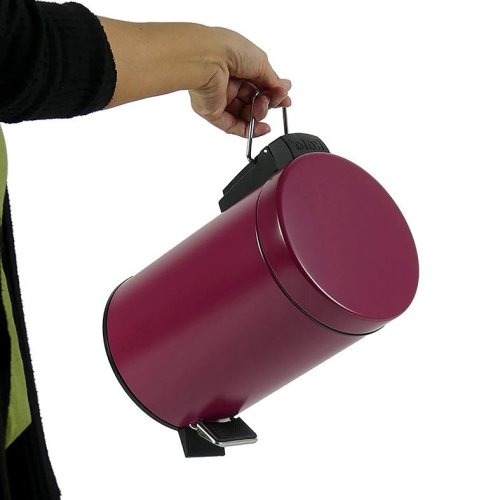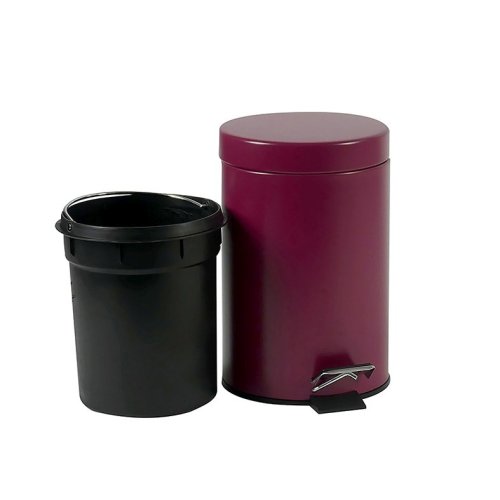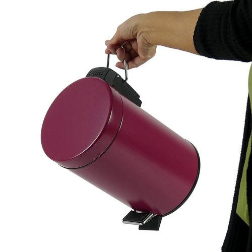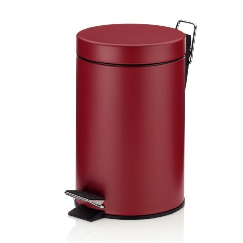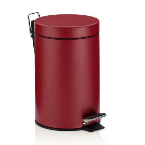 Na menší odpad v kuchyni a kúpeľni: kovový šliapací kôš s matným povrchom. Vnútorné vedro je vyrobené z čierneho plastu a má rukoväť. Odpadkový kôš je vysoký 26 cm a má priemer 17 cm. objem 3l. Farebný variant: malinová červená. Kov matný práškový lak 3L, 17cm, 26cm v
