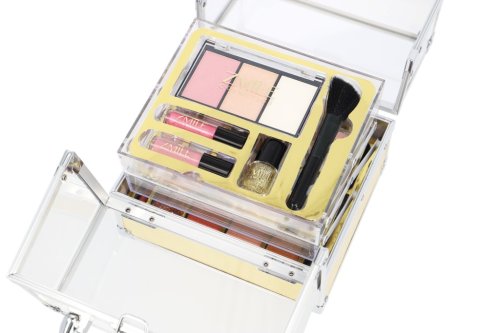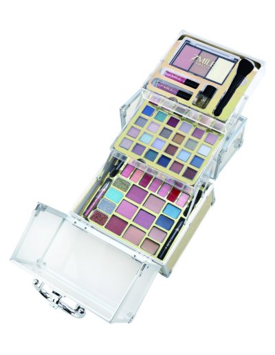 Kozmetický kufrík akrylátový zlatý ‚Glam' – celkom 64 ks príslušenstva. Obsahuje 30 ks očných tieňov, 2x lesk na pery, 1 x trblietavý lak na nechty, 1 x štetec, 3 x linky, 7 x krmový rúž, 4 x krbové očné tiene, malý štetec na pery a 1xmalý štetec na púder. Dermatologicky testované, vyhovuje prísnym normám EÚ.