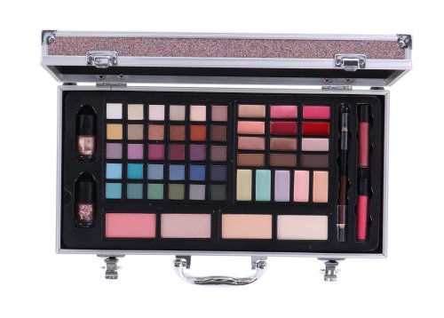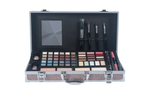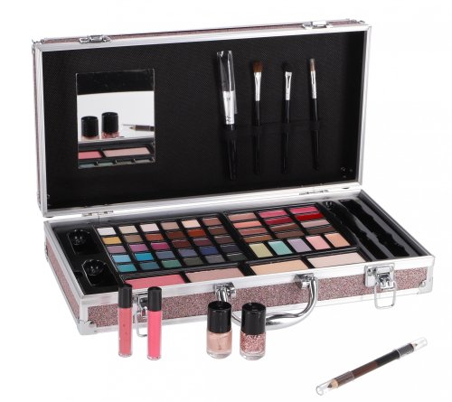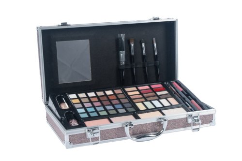 Kozmetický kufrík so zrkadielkom. Obsah: 2 lesky na pery, 2 lícenky, 2 púdre, 1 dvojitá ceruzka (2 farby), 30 farieb očných tieňov, 3 krémové očné tiene, 3 farby na obočie, 6 leskov na pery, 2 laky na nechty, 5 korektorových farieb a 4 rôzne štetce.