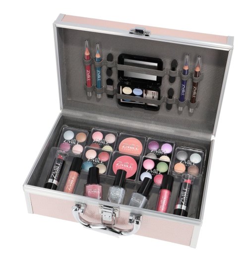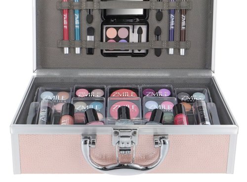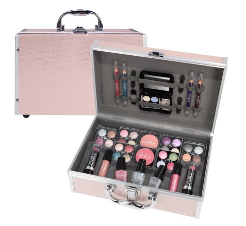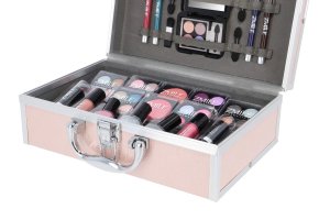 Kozmetický kufrík ružový „Eye-Catcher“ s integrovaným zrkadlom – celkom 42 ks príslušenstva. Obsahuje 24× očnými tieňmi, 2x lak na nechty, 1x trblietavý lak na nechty, 1× tvárenku, 2x rúž, 2x lesk na pery, 3× ceruzku na oči, 1x ceruzku na oči, 3× obojstranný aplikátor, 1x štetec. Dermatologicky testované, vyhovuje prísnym normám EÚ.