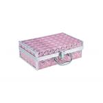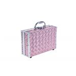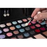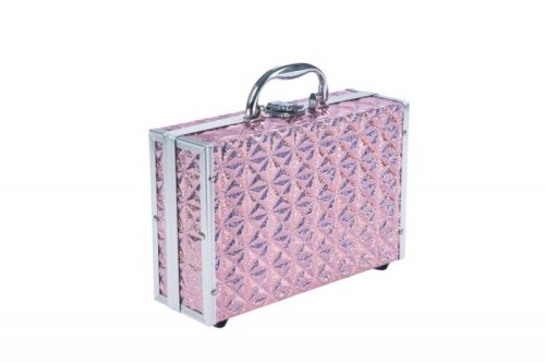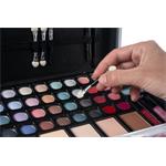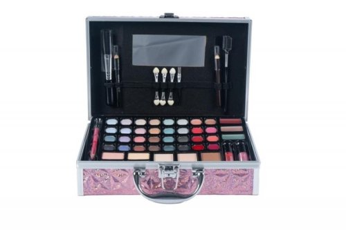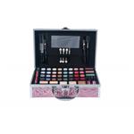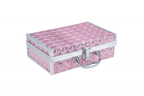 Kozmetický kufrík. Obsah: 24 farieb očných tieňov, 8 trblietok na pery, 4 tvárenky, 3 púdre na tvár, 2 lesky na pery, 3 krémové očné tiene, 1 dvojitá ceruzka, 2 ceruzky na oči, 1 štetec na obočie, 3 dvojité aplikátory, 1 šte zrkadlo.