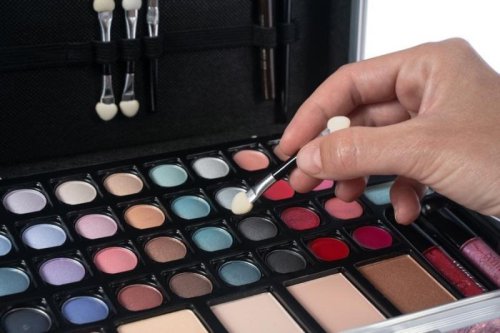 Očné tiene, lícenky, rozjasňovače, štetce, lesky na pery, ceruzky na oči, kontúrku na pery a zrkadlo.