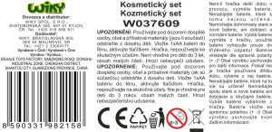Kozmetický set s fénom. Veľkosť fénu 13cm. Obsahuje: fén, kulmu, okrúhlu kefu na vlasy, zrkadlo, kľúče od auta, flakónky, rúž. 1xAA batéria nie je súčasťou.