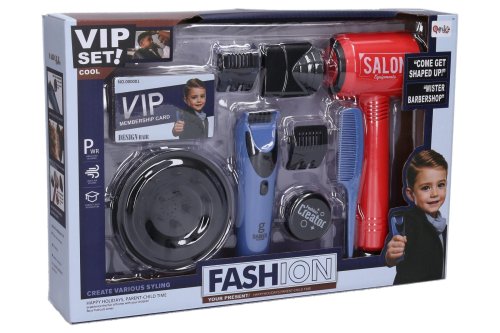 Kozmetický set Barber pre chlapcov ponúkne všetko potrebné pre malého kaderníka. Obsahuje funkčný fén 20 cm, strojček na vlasy, hrebeň, nástavce a členskú kartu do salónu. Na prevádzku je potreba 2xAAA batérie do strojčeka a 3xAAA batérie do fénu (nie sú súčasťou). Rozmery balenia: 36 x 25 x 6,8 cm. Vek: 3+