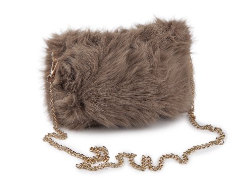 Kožušinová kabelka s kovovou retiazkou 24x19 cm - béžová