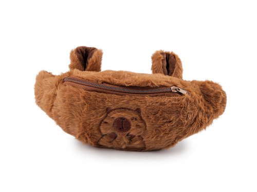 Chlpatá ľadvinka s motívom kapybary je roztomilým módnym doplnkom, ktorý ocenia predovšetkým deti. Má praktické využitie na prechádzke, pokiaľ si vystačí len so základným vybavením ako sú kľúče, mobil, vreckovky, peniaze a pod. Uzatvára sa na zips, môžete ju nosiť okolo pása alebo krížom cez rameno. Bedrový pás je nastaviteľný, zapína sa na plastovú sponu.
