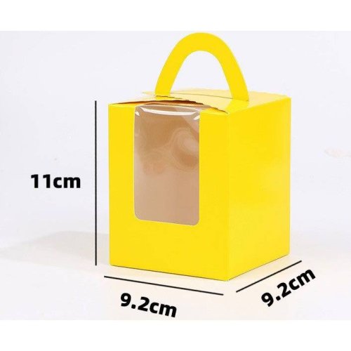 Škatuľka na cupcaky, žltá. Rozmery 11 x 9,2 x 9,2 cm.