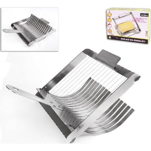 Klasický krájač knedlí s nerezovými strunami, ktorý sa môže umývať aj v umývačke riadu.