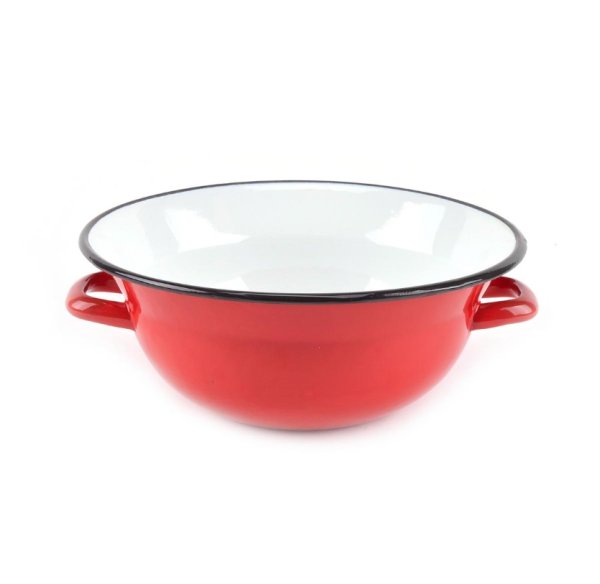 Zarábací smaltovaná misa s uchami červenej farby. Priemer 26 cm, objem 3 litre. Drobné výrobné nedostatky, ako sú nedosmaltovanie, fliačky a pod. nie sú predmetom reklamácie. Vyrobené v EÚ. EAN 5945414011042