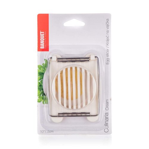 Krájač na vajíčka CULINARIA Cream je užitočný pomocník na ľahké krájanie vajíčok na plátky. Krájač je vyrobený z pevného plastu, jedným pohybom porciuje vajcia pomocou nerezových strún a je vhodný do umývačky riadu.