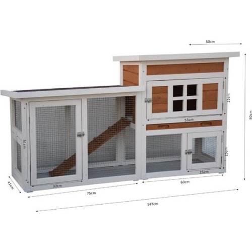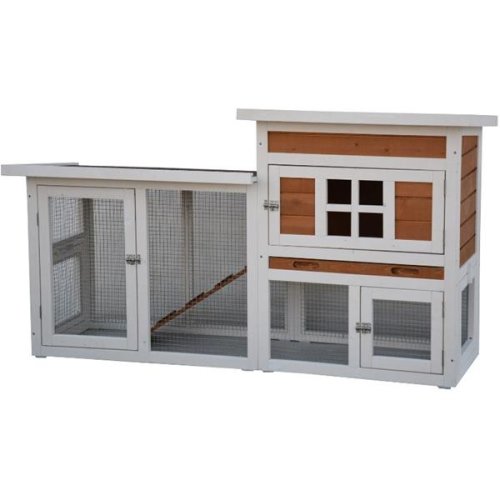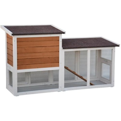 Králikáreň Villa z borovicového dreva v elegantnom hnedobielom prevedení je ideálnym útočiskom pre malé a stredne veľké králiky a ďalšie drobné cicavce (morčatá a pod.). Priestranný koterec so širokými dvierkami je dobre prístupný a vďaka výsuvnému kovovému dnu sa ľahko čistí. Výbeh má ďalšie dvoje dvierka (malé a veľké) as kotercom ho spája drevená rampa s priečkami. Ak chcete zvieratám dopriať viac priestoru, môžete k „vile“ pripojiť ďalšie výbehy – priechod do nich umožňujú odnímateľné panely na oboch koncoch výbehu. Proti dravcom chránia zvieratá konštrukcie z masívneho dreva s pletivovými výplňami a proti nepriazni počasia strecha s bitúmenovým povrchom a zahnutým spodným presahom pre plynulý odtok vody. Hlavné prednosti králikárne: