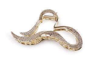 Kovový škripec do vlasov je bohato zdobený trblietavými brúsenými kamienkami, vďaka ktorým je neprehliadnuteľný.