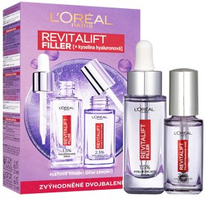 Súprava obsahuje: Sérum proti vráskam s 1,5% čistej kyseliny hyalurónovej Revitalift Filler (Hyaluronic Acid Serum) 30 ml Očné sérum s 2,5% kyselinou hyalurónovou Revitalift Filler (Eye Serum) 20 ml