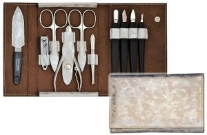 Luxusná manikúrová sada v puzdre z pravej kože s hadím motívom. Špičkové výrobky z Nemecka určite ocení celá rodina.