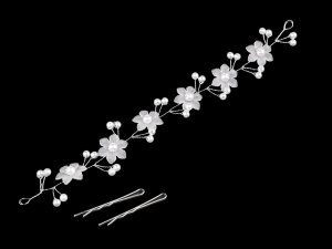 Romantická ozdoba s kvetmi a perlovými korálkami bude jemným a elegantným doplnkom účesu.