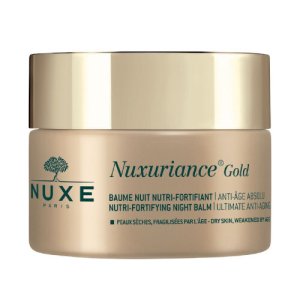 Vyživujúci nočný balzam Nuxuriance Gold sa stará o pleť počas spánku.