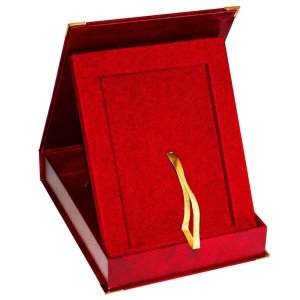 Etue pre drevenú podložku 228 x 305 mm Vertikálne otváranie - veko etue je upevnené na jednej z jej kratších strán Materiál: imitácia kože Vyberateľná zamatová výplň pre použitie ako stojan Rozmer …